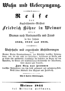 Wahn und Ueberzeugung Reise des Kupferschmiede-Meisters Friedrich Höhne in Weimar über Bremen nach Nordamerika und Texas in den Jahren 1839, 1840 und 1841.