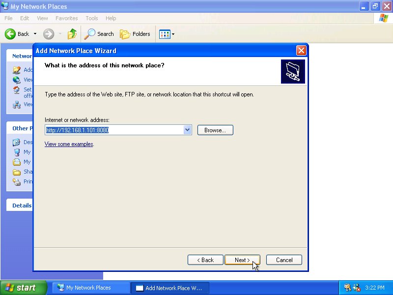 - In the Internet or network address field, enter the IP address shown