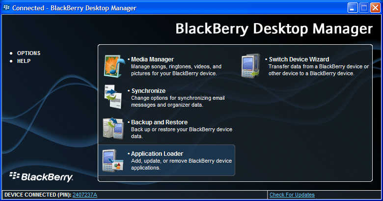 - Scroll down to the Install via BlackBerry Desktop Manager section