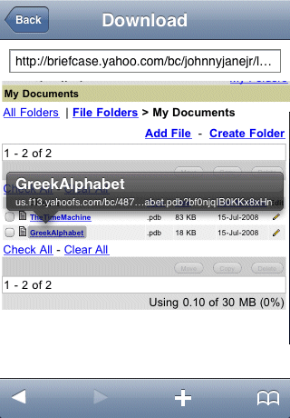 How to transfer files to iSilo™ for iPhone OS using Yahoo! Briefcase