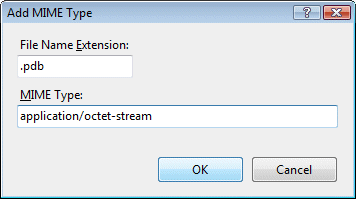 - In the Add MIME Type dialog, enter .pdb as the
