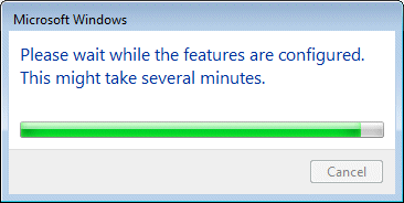 - Windows proceeds to install and turn on Internet Information Services.
