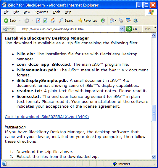 iSilo™ for BlackBerry® to your BlackBerry® device