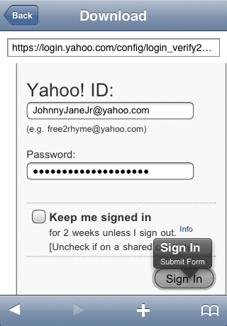 - On the Yahoo! Briefcase sign-in page, enter your Yahoo ID and password,