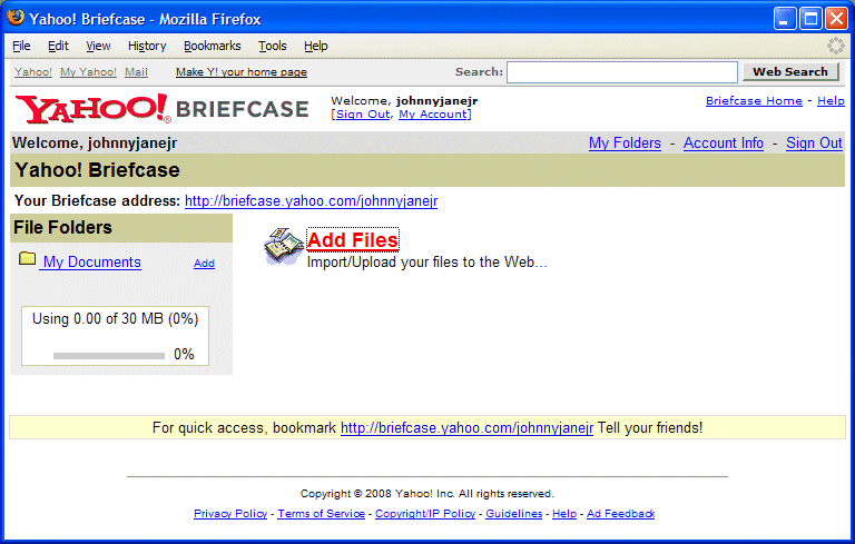 - You then get the main page of your Yahoo! Briefcase account.